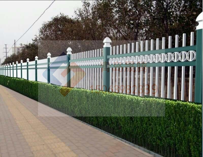 鋅鋼護(hù)欄整體高度2米,立柱中心距為3米,采用100mm*100mm方形鍍鋅鋼管作為立柱,40*40mm方形鍍鋅鋼管作為衡量,20mm*20mm方形鍍鋅管作為豎向連接桿,橫梁、立柱、豎向連接桿以沖孔穿接的方式連接,顏色搭配為綠白搭配給人以新鮮感。